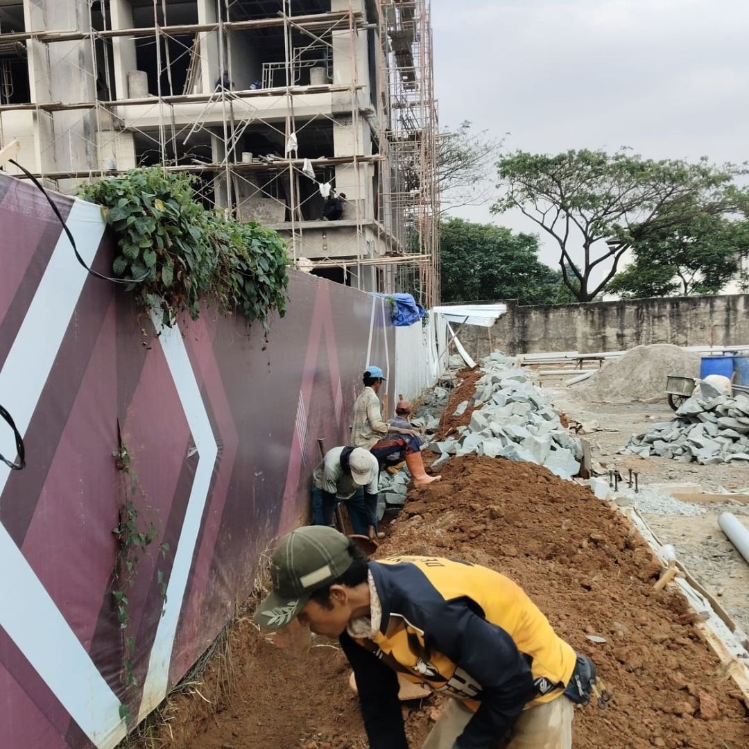Gali pondasi sesuai standar (biasanya 30x30 cm, kedalaman 60–80 cm).