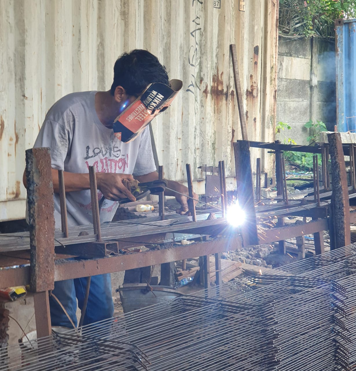 Las ulang bagian sambungan besi yang retak atau karatan.